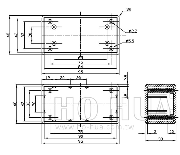 材質: UL94-HB,ABS,連續工作溫度為攝氏70度