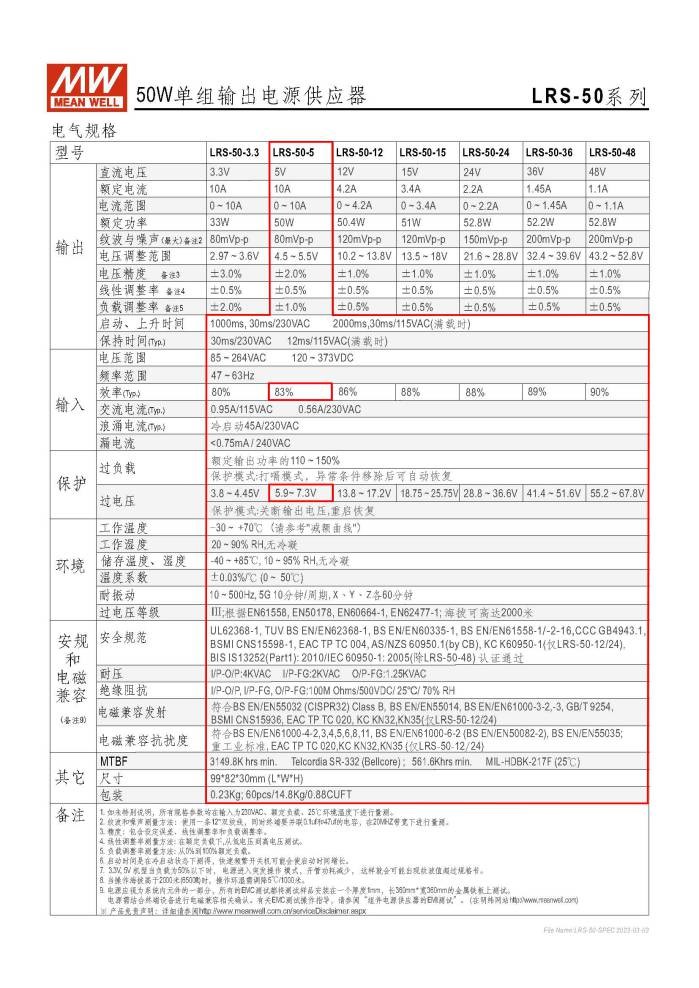 MW明緯 交換選擇式電源供應器 LRS-50-5V ( 10A )