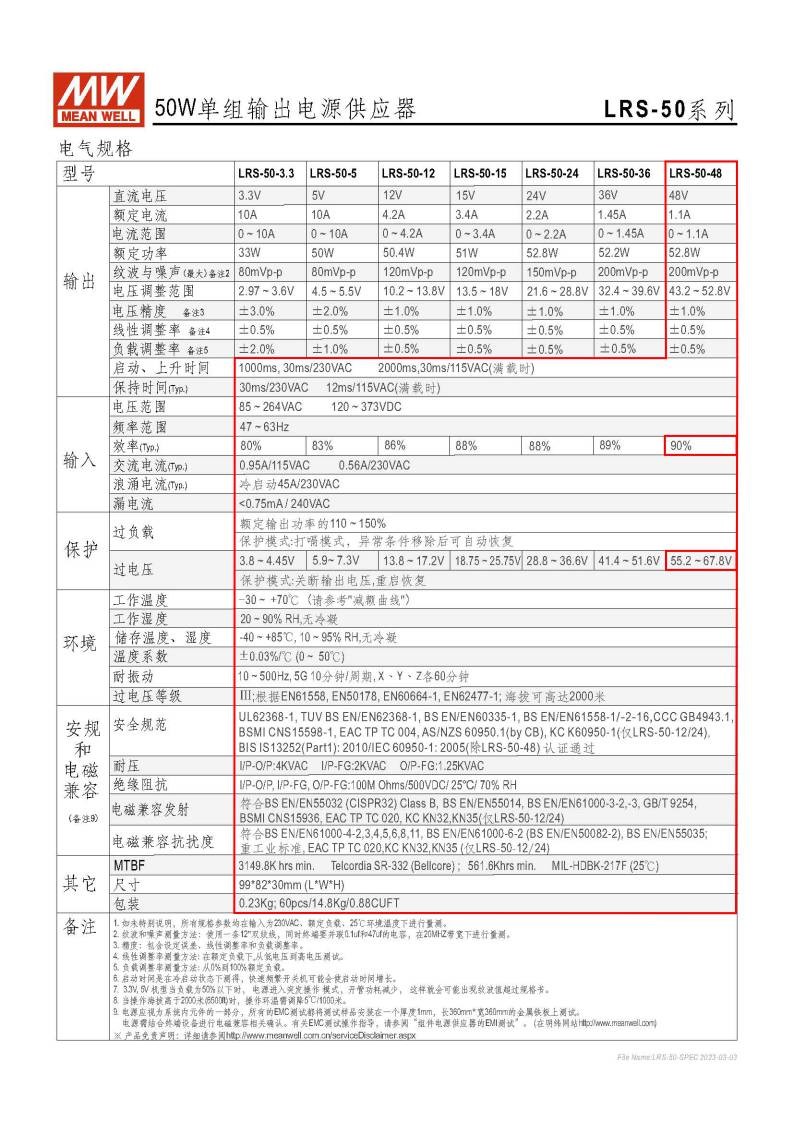 MW明緯 交換選擇式電源供應器 LRS-50-48V ( 1.1A )