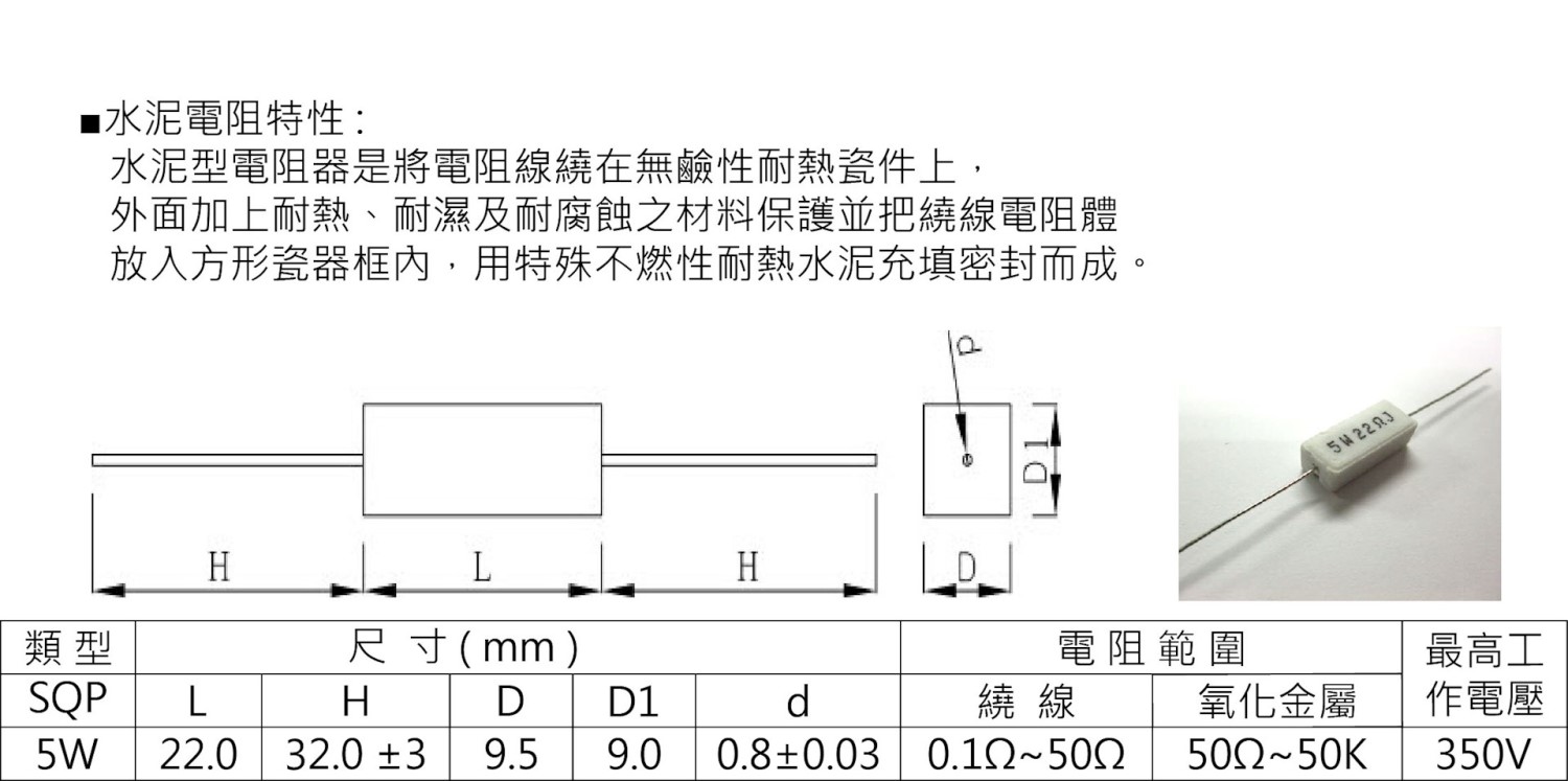▪ 用途 : 水泥電阻通常用於功率大,電流大的場合,有2W,3W,5W,10W,20W甚至更大的功率,像空調,電視機等都會用到水泥電阻