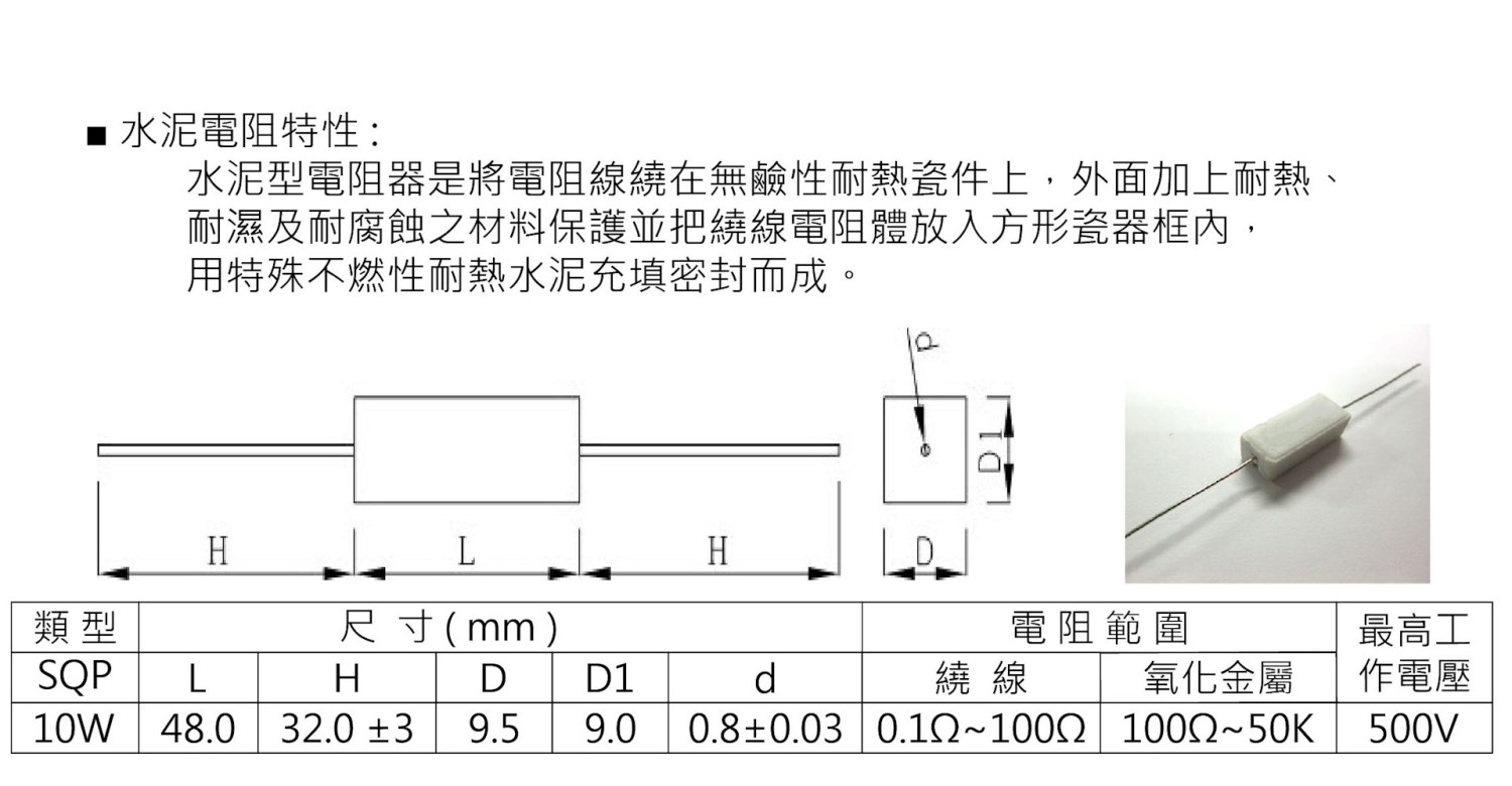 ▪ 用途 : 水泥電阻通常用於功率大,電流大的場合,有2W,3W,5W,10W,20W甚至更大的功率,像空調,電視機等都會用到水泥電阻