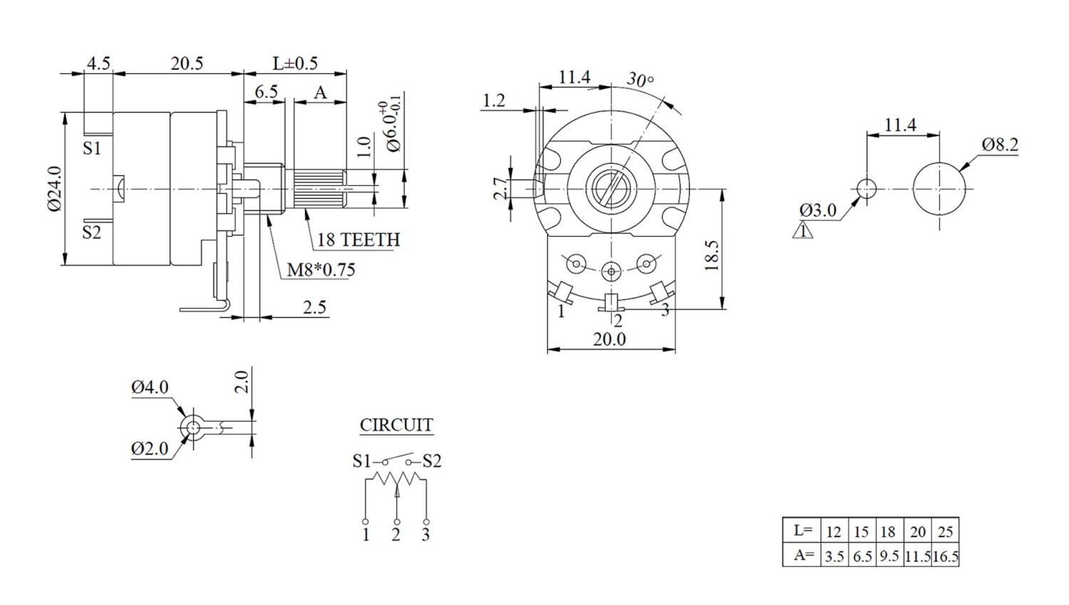24ØVR B200Ω 附開關 可變電阻 ( 24S1-B200-L20 )