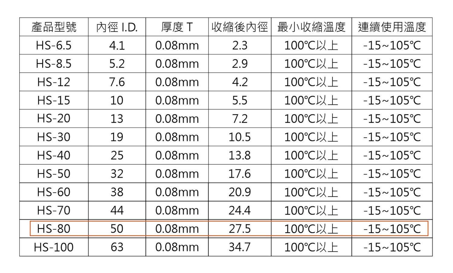 KSS 紅色扁熱縮管Ø50 80mm ( HS-80R ) 100米
