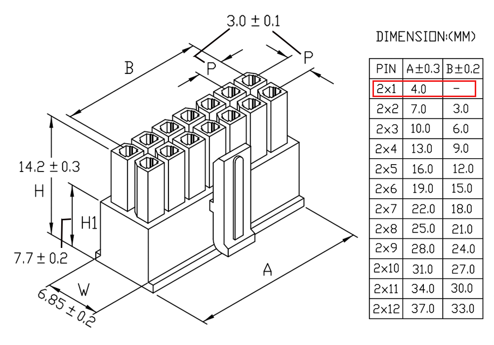3.0Mini Fit 2*1P公 (配3.0MF母端子) ( G50-02MH ) 2pcs