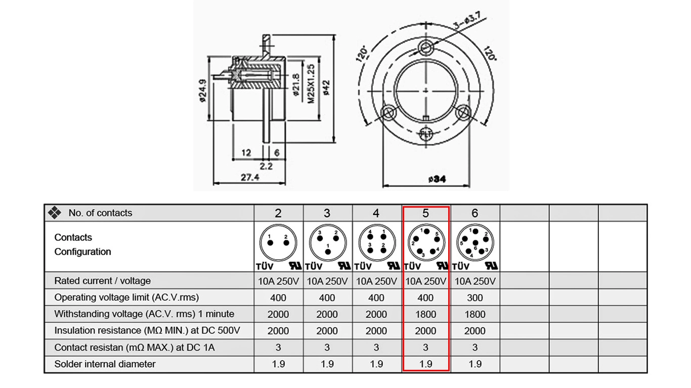 PLT 25Ø 5P短母座/金屬固定座 ( PLT-255RF )