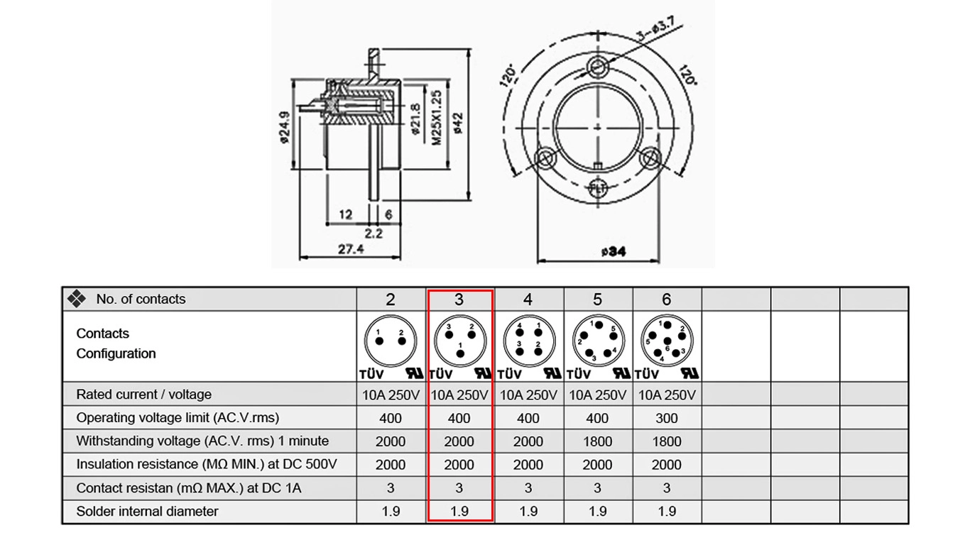 PLT 25Ø 3P短母座/金屬固定座 ( PLT-253RF )