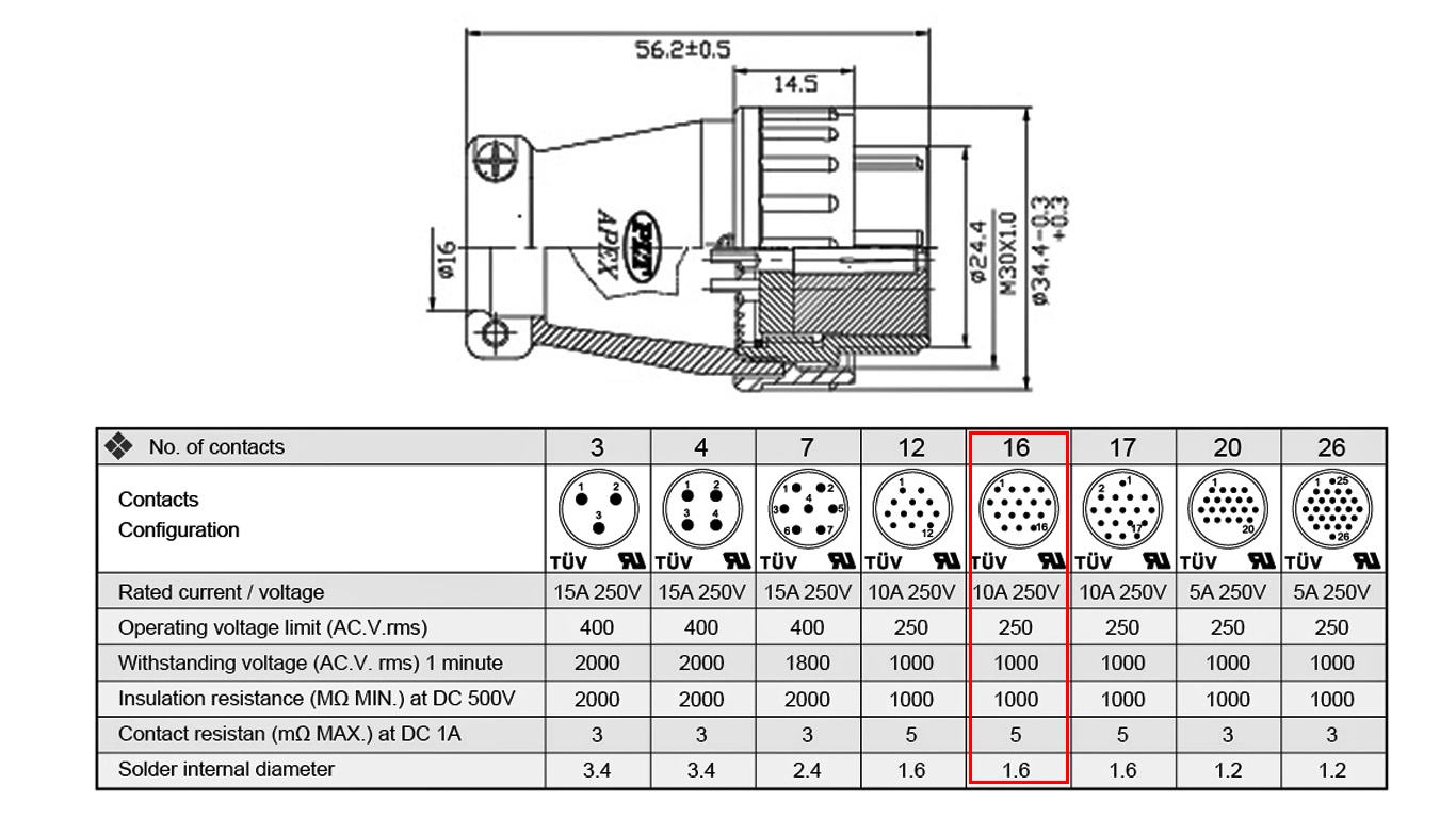 PLT 28Ø 16P長母頭/金屬接頭 ( PLS-2816PF )