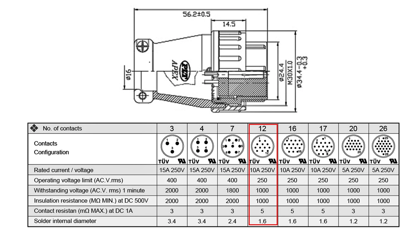 PLT 28Ø 12P長母頭/金屬接頭 ( PLS-2812PF )