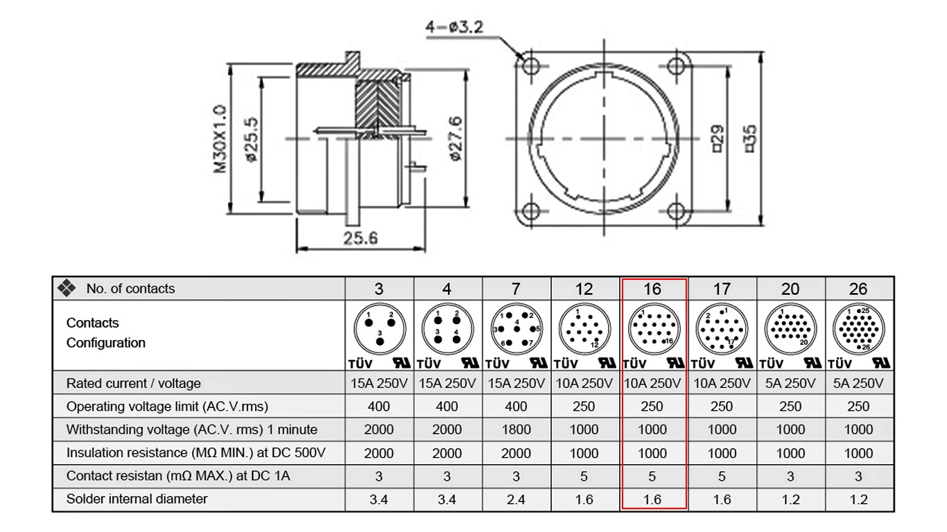 PLT 28Ø 16P 方型短母 金屬固定座 ( PLS-2816RM )