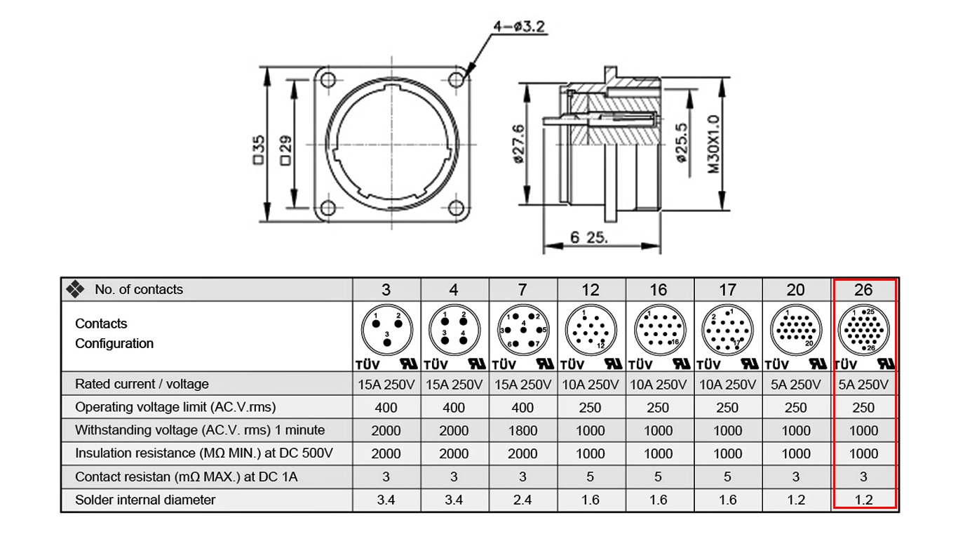 PLT 28Ø 26P 方型短母 金屬固定座 ( PLS-2826RF )