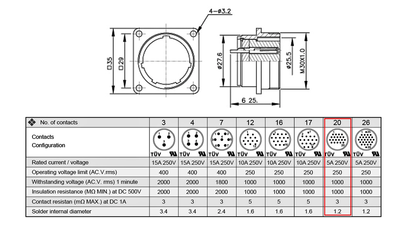 PLT 28Ø 20P 方型短母 金屬固定座 ( PLS-2820RF )