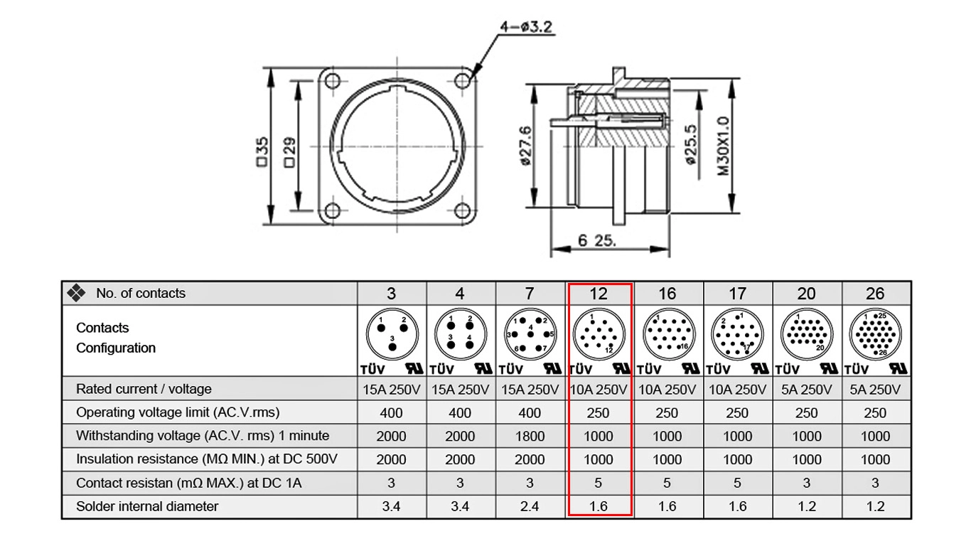 PLT 28Ø 12P 方型短母 金屬固定座 ( PLS-2812RF )