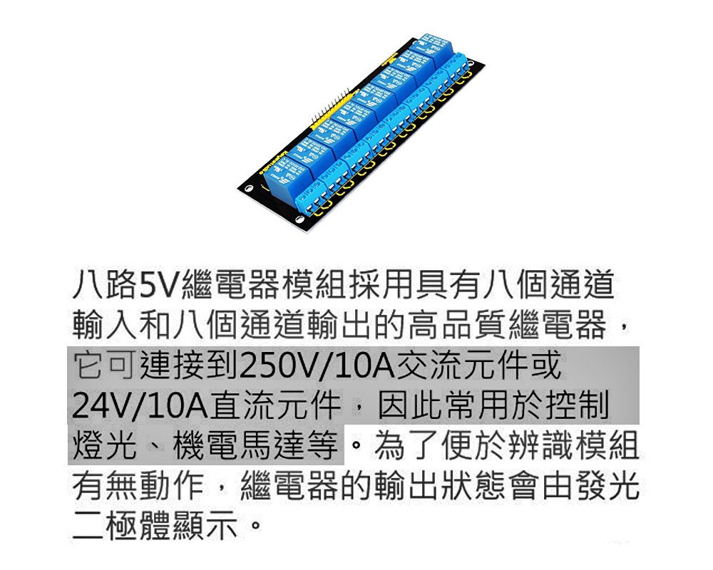 8路5V繼電器模組 (台製) ( MTARDKS0059 )