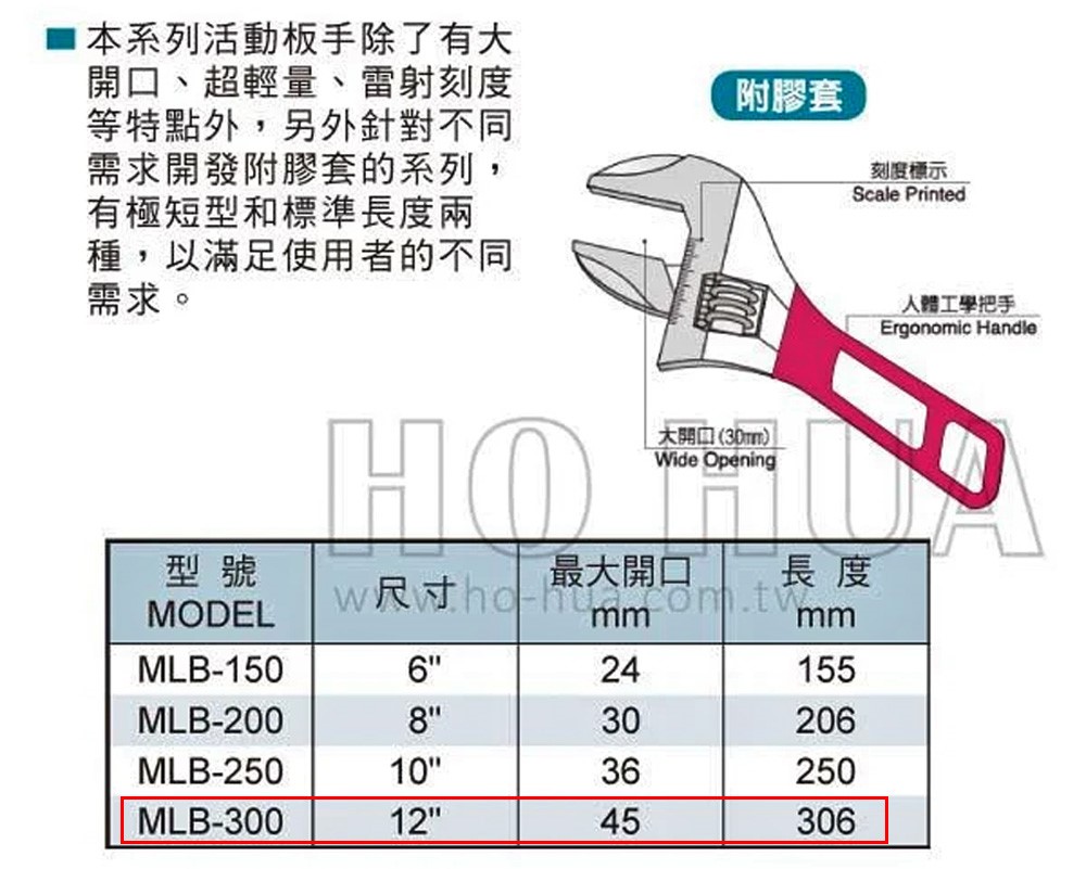 ALSTRONG 12"輕量型大開口活動板手 ( ALS-MLB-300 )