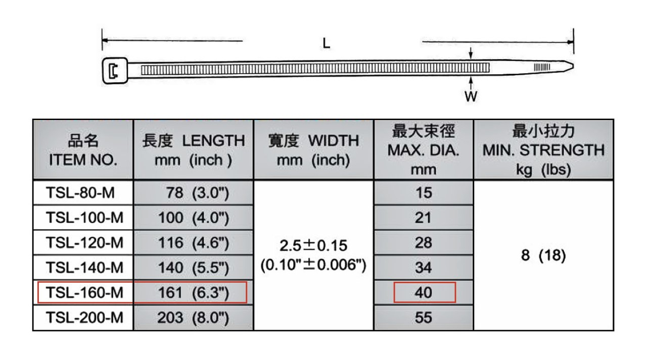 本色 束帶 W 2.5*160mm 100pcs ( TSL-160-M )