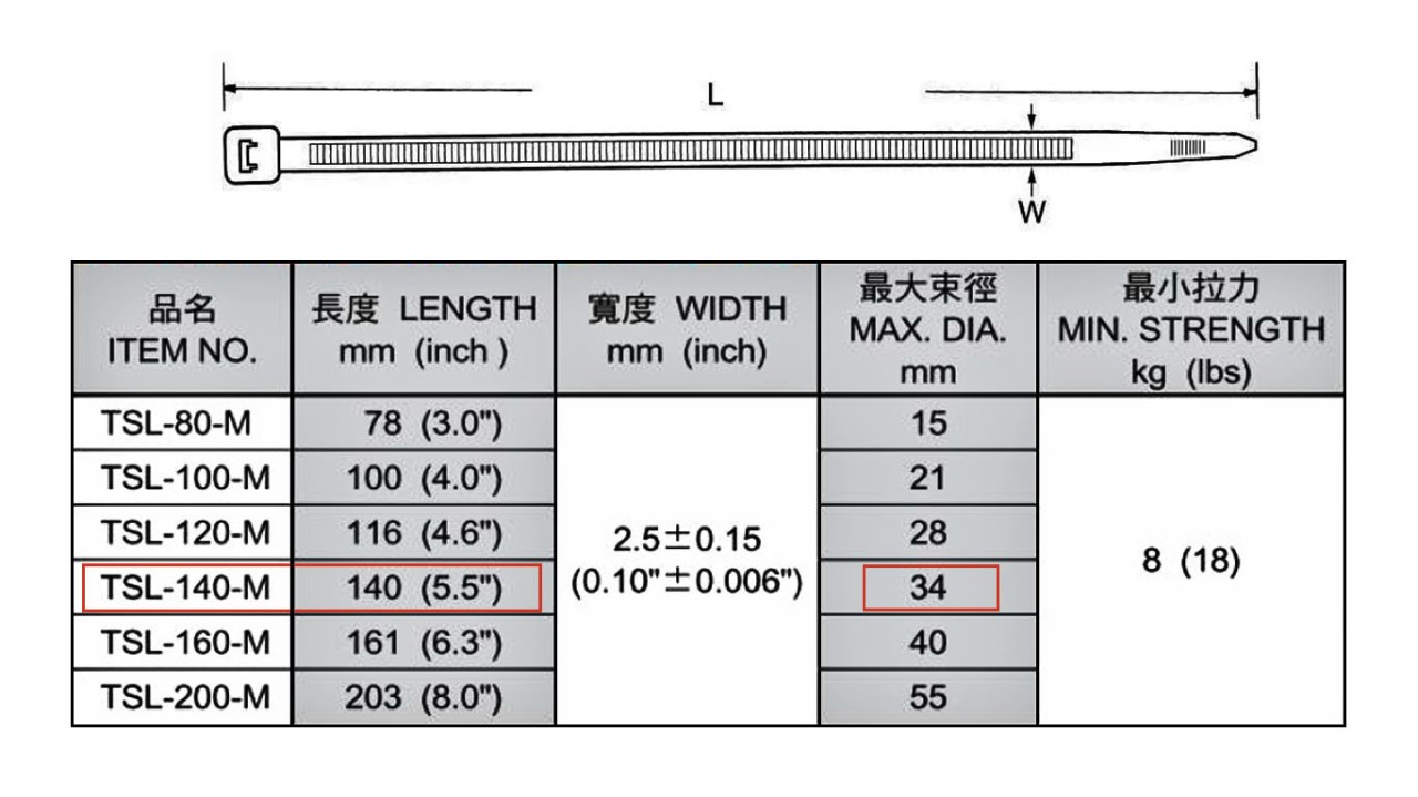 黑色 束帶 BK 2.5*140mm 100pcs ( TSL-140-M )