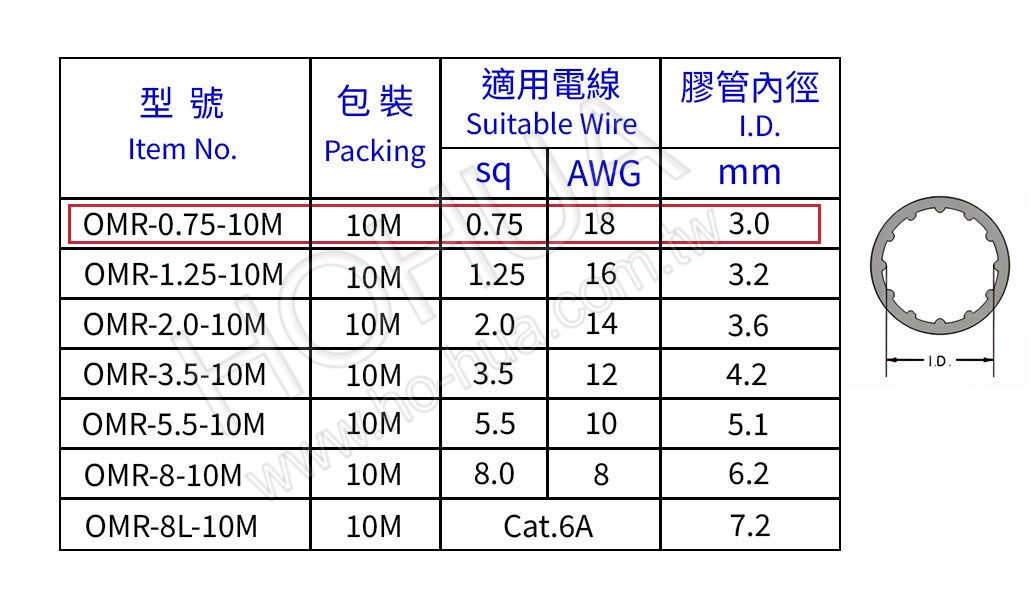 • 適用電線 (sq/AWG) : 0.75 / 18