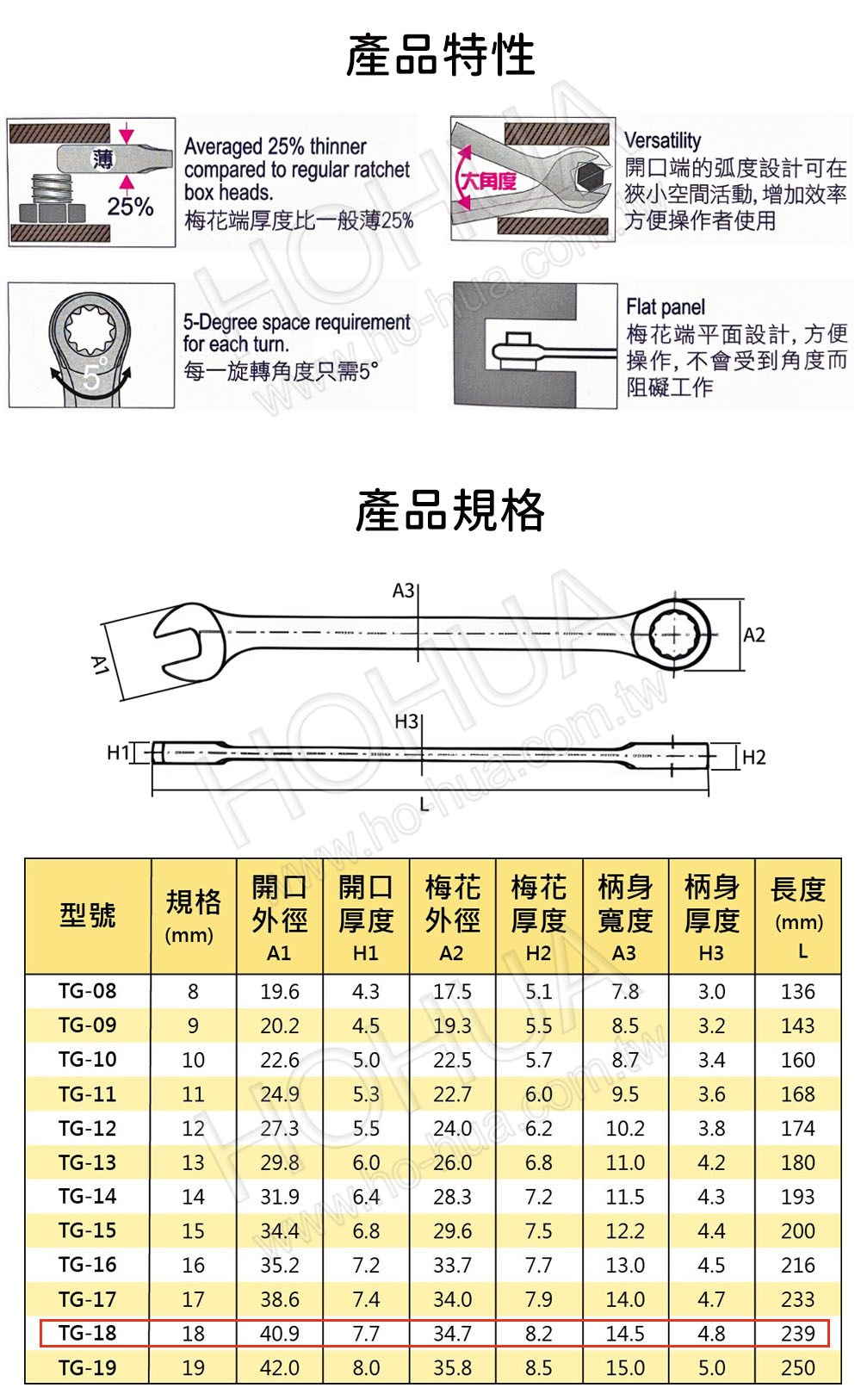 • 棘輪設計板手,可快速作業;棘輪端比一般薄25%,適合狹小環境使用
